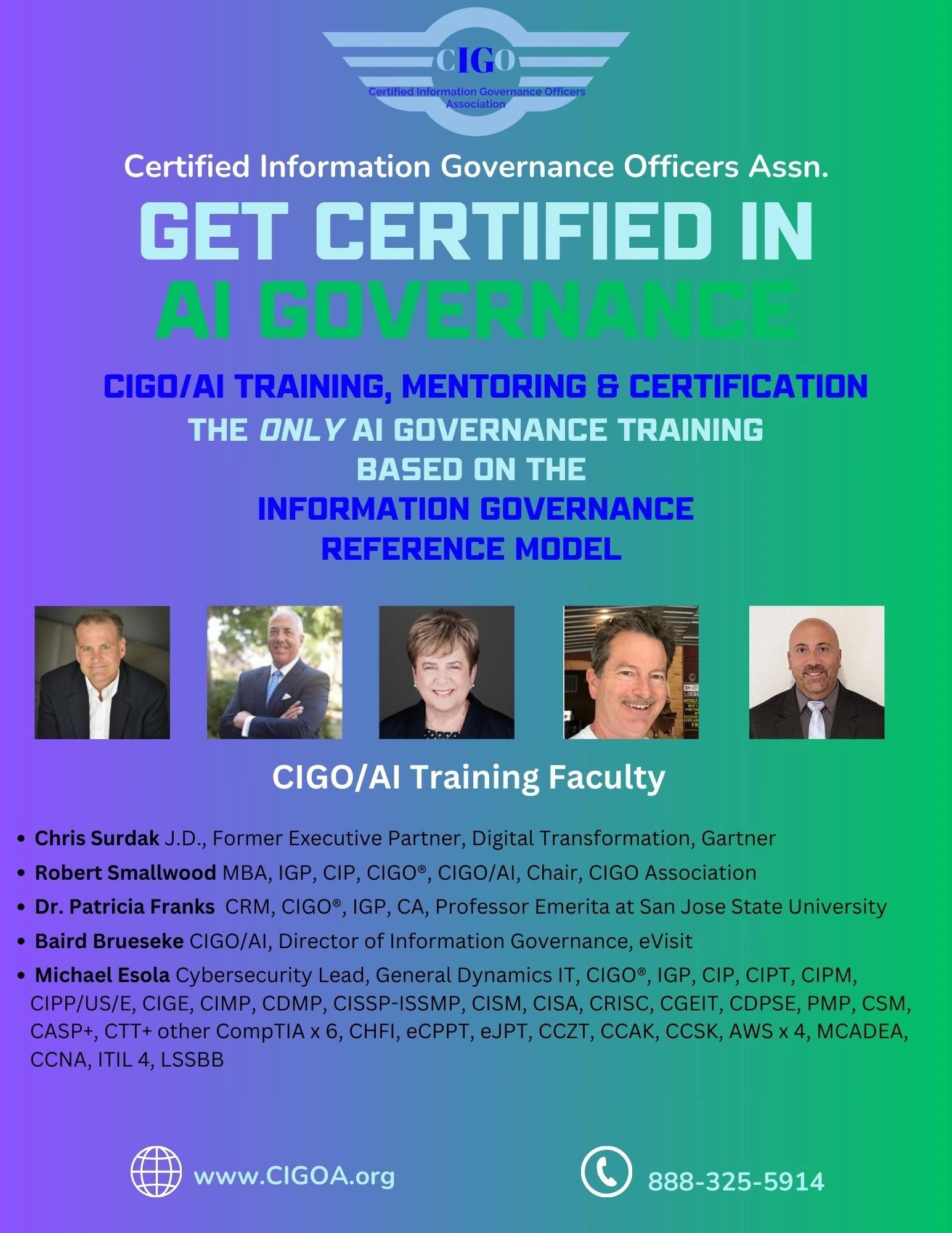 Next CIGO/AI Class will be held Feb. 23, 25, 27 from 1pm-5pm ET, Includes training, mentoring, and testing.